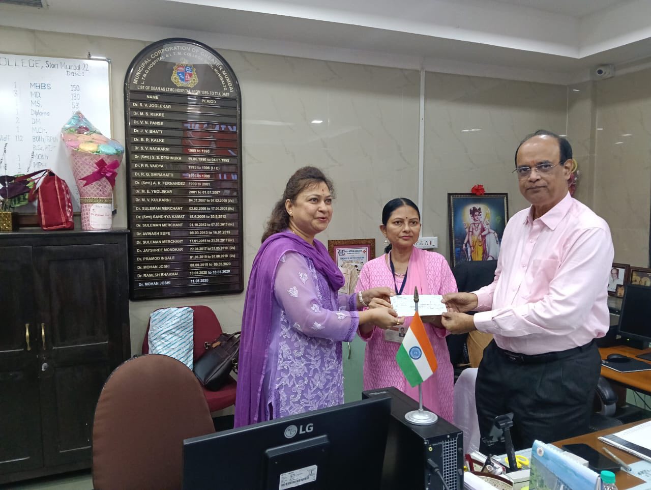 संकल्प सिद्धी ट्रस्ट या माझ्या स्वयंसेवी संस्थेच्या वतीने ३०.०९.२०२५ रोजी मी सायन हॉस्पिटलचे डीन डॉ. मोहन जोशी आणि नेत्ररोग विभागाच्या प्रमुख डॉ. छाया शिंदे यांना नमो नेत्र संजीवनी आरोग्य अभियानांतर्गत ५०,००० रुपयांचा धनादेश सुपूर्द केला. या योगदानामुळे गरजू रुग्णांसाठी नेत्र तपासणी, चष्मा आणि मोतीबिंदू शस्त्रक्रियांना मदत होईल.
