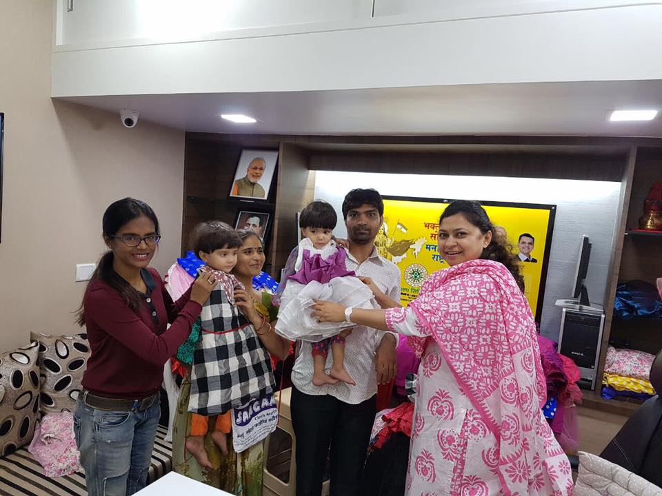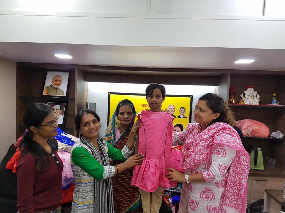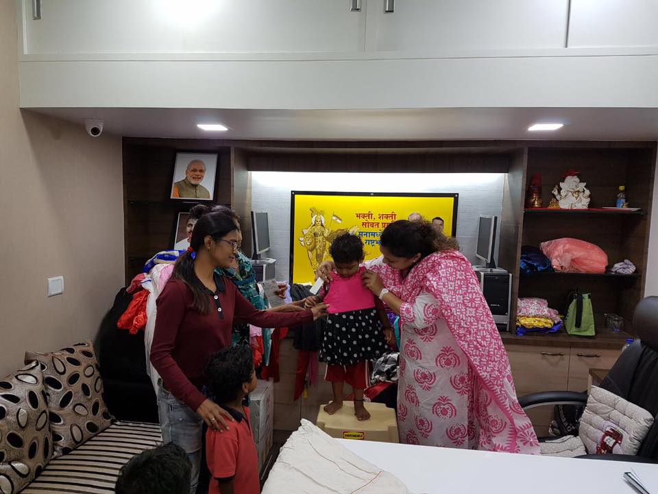 Today @ Dharavi - Sankalp Siddhi Trust office - while distributing free frill frocks to girl child . It was a satisfying feeling to see the happiness the small girls & their mother had after getting the colourful frocks.