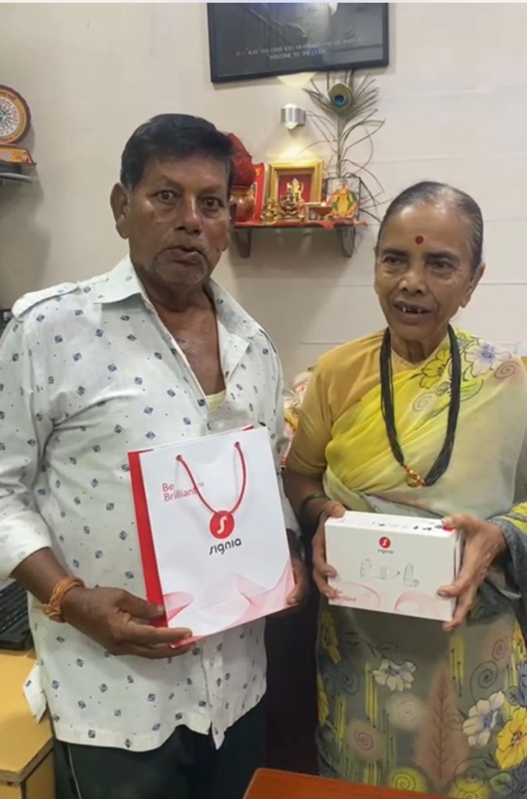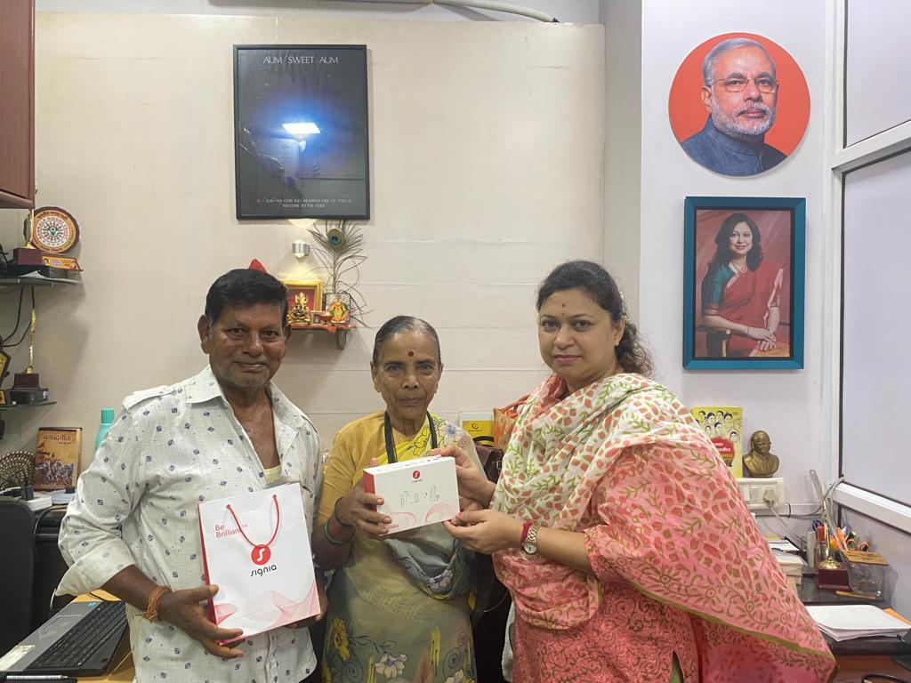 Hearing AID DEVICE handed over to Smt Pikale which is 80 yrs old . Due to financial issues the couple was unable to buy the device for long time. When they approached Sankalp Siddhi Trust they were heard and help was extended to them.