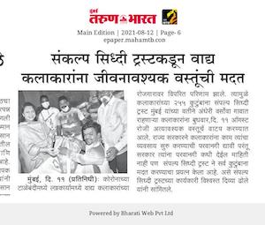 संकल्प सिध्दी ट्रस्टकडून वाद्य कलाकारांना जीवनावश्यक वस्तूंची मदत