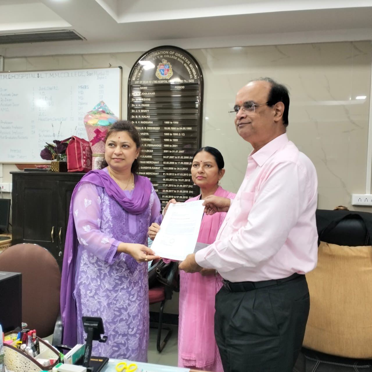संकल्प सिद्धी ट्रस्ट या माझ्या स्वयंसेवी संस्थेच्या वतीने ३०.०९.२०२५ रोजी मी सायन हॉस्पिटलचे डीन डॉ. मोहन जोशी आणि नेत्ररोग विभागाच्या प्रमुख डॉ. छाया शिंदे यांना नमो नेत्र संजीवनी आरोग्य अभियानांतर्गत ५०,००० रुपयांचा धनादेश सुपूर्द केला. या योगदानामुळे गरजू रुग्णांसाठी नेत्र तपासणी, चष्मा आणि मोतीबिंदू शस्त्रक्रियांना मदत होईल.